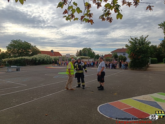 Der schöne Nebeneffekt für die Kinder, vor allem in der Grundschule und den Kindergärten, war es die Erfahrung mit Feuerwehrleuten zu machen und mal einen "Einsatz" live zu sehen. Hinterher wurden selbstverständlich sämtliche Fragen der Kinder beantwortet. Natürlich war es aber auch für uns sehr lehrreich, da wir die Gelegenheit hatten uns z.B. die Einrichtungen in Bezug auf Brandbekämpfung und Räumung genauer anzuschauen. Ein besonderer Dank geht an die Kitas und Schulen die mit uns bei solchen Aktionen eng zusammenarbeiten und natürlich an die 15 freiwilligen Feuerwehrleute, die zum Teil Urlaub genommen oder sich haben freistellen lassen um daran teilzunehmen.